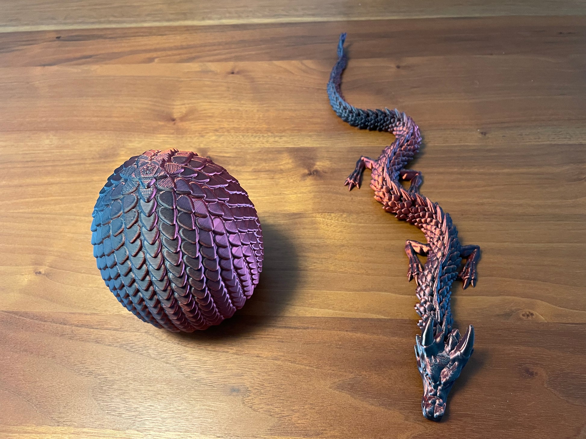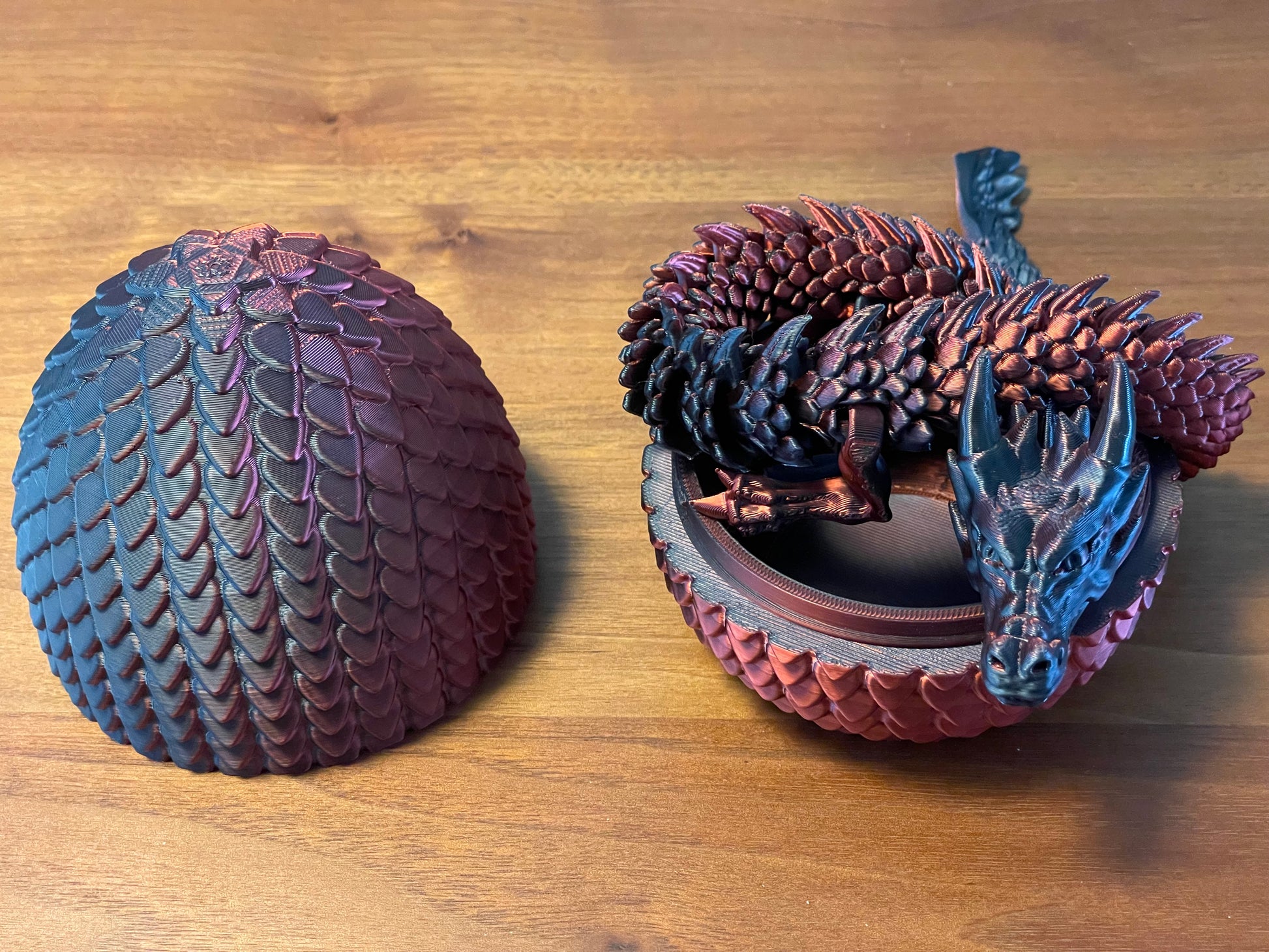 3D printet drage og Æg - Dragen kan være i æget i lukket tilstand.