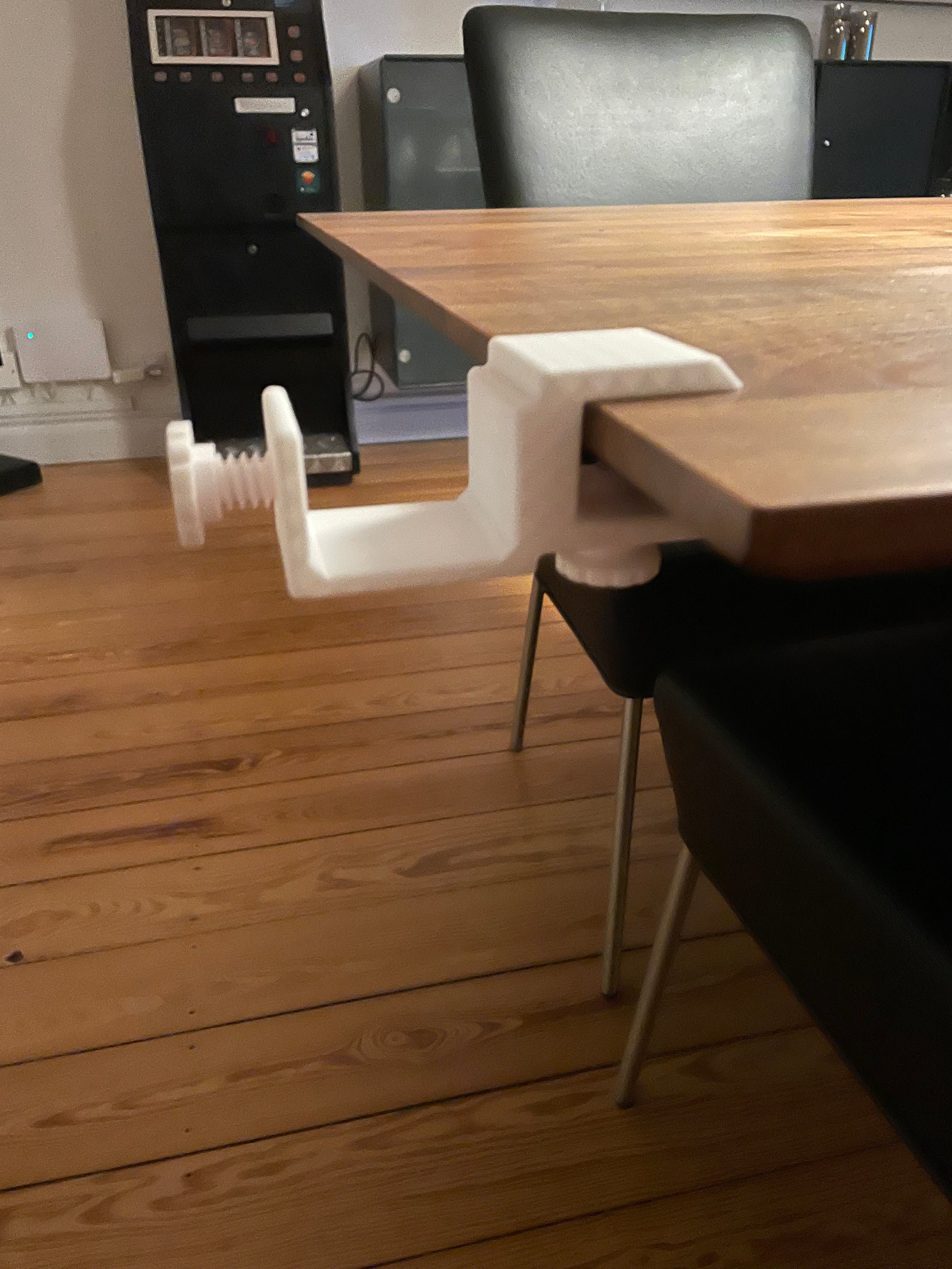 Den er lavet i PLA. og vejer 69g afhængig af størrelse naturligvis. 2 Skruer medfølger.